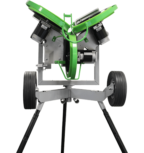 - Quick horizontal movement of the throwing head keeps batters alert and focused, with unpredictable deliveries.