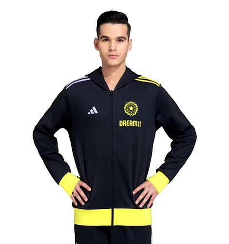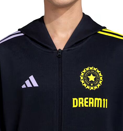 - Stay cozy and stylish in this Cricket Travel jacket with BCCI, Dream 11, and adidas logos.
